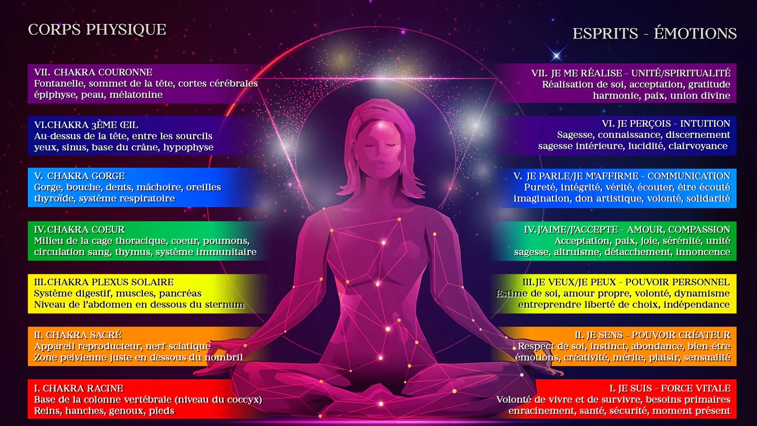 Les chakras, centres énergétiques du corps, jouent un rôle clé dans l’équilibre global. Les soins énergétiques harmonisent ces points pour favoriser un fonctionnement optimal du corps et de l’esprit.